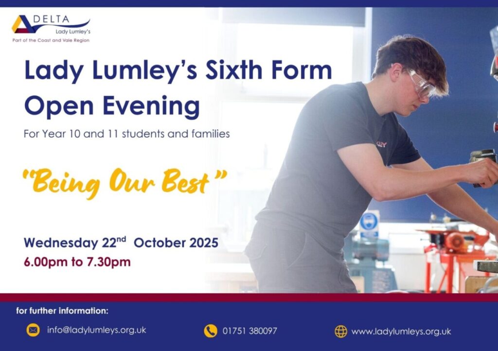 We welcome all year 10 and 11 students and families to our forthcoming Sixth Form Open Evening. We are an inclusive, supportive and highly ambitious post-16 educational provider. Our students thrive in their academic and personal development. We look forward to discussing your post-16 pathways with you. You will be able to have conversations with subject experts about the courses you could study for two fabulous years. We hope you can join us for the evening and consider Lady Lumley’s Academy as your sixth form of choice.
